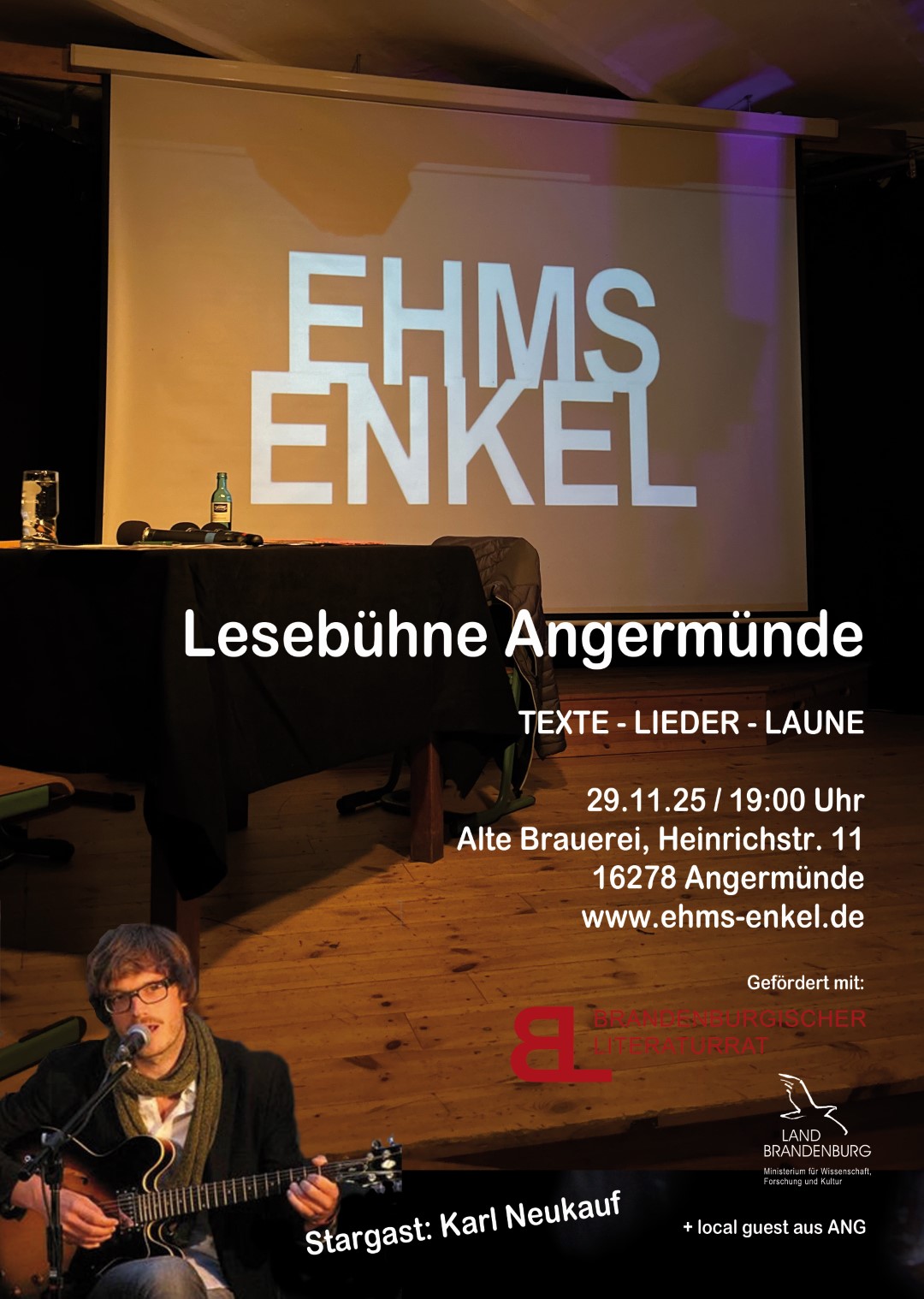 Ehms Enkel ist die erste und aktuell einzige Lesebühne der Uckermark. Sie findet an handverlesenen Terminen in Angermünde statt. Die Mitglieder sind: